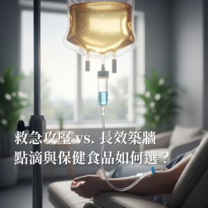 - 「點滴救急,口服養底」: 面臨壓力爆棚、即將感冒或重要場合前,選用點滴進行「高濃度攻堅」;平時則以口服維持底氣。