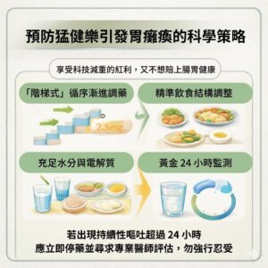 - 黃金 24 小時監測: 若出現持續性嘔吐超過 24 小時,應立即停藥並尋求專業醫師評估,切勿強行忍受。